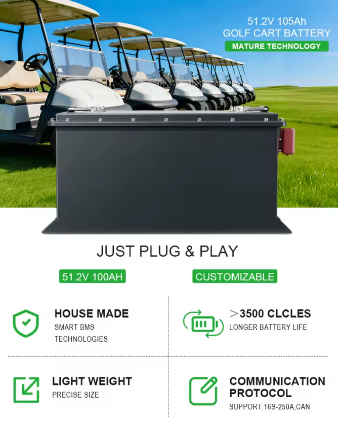 OEM ODM LiFePO4 MAX BMS 200A Golf Cart Battery Electric Lithium Ion Battery Packs High Capacity 51.2v 105ah